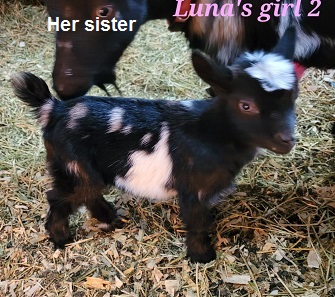 Dam: Ivory ~ Sire: Moon ~ DOB 9-19-25, GIRL, Black and White, BLUE eyes, Ivory’s udder pics in gallery, $375.00 HOLD AC
